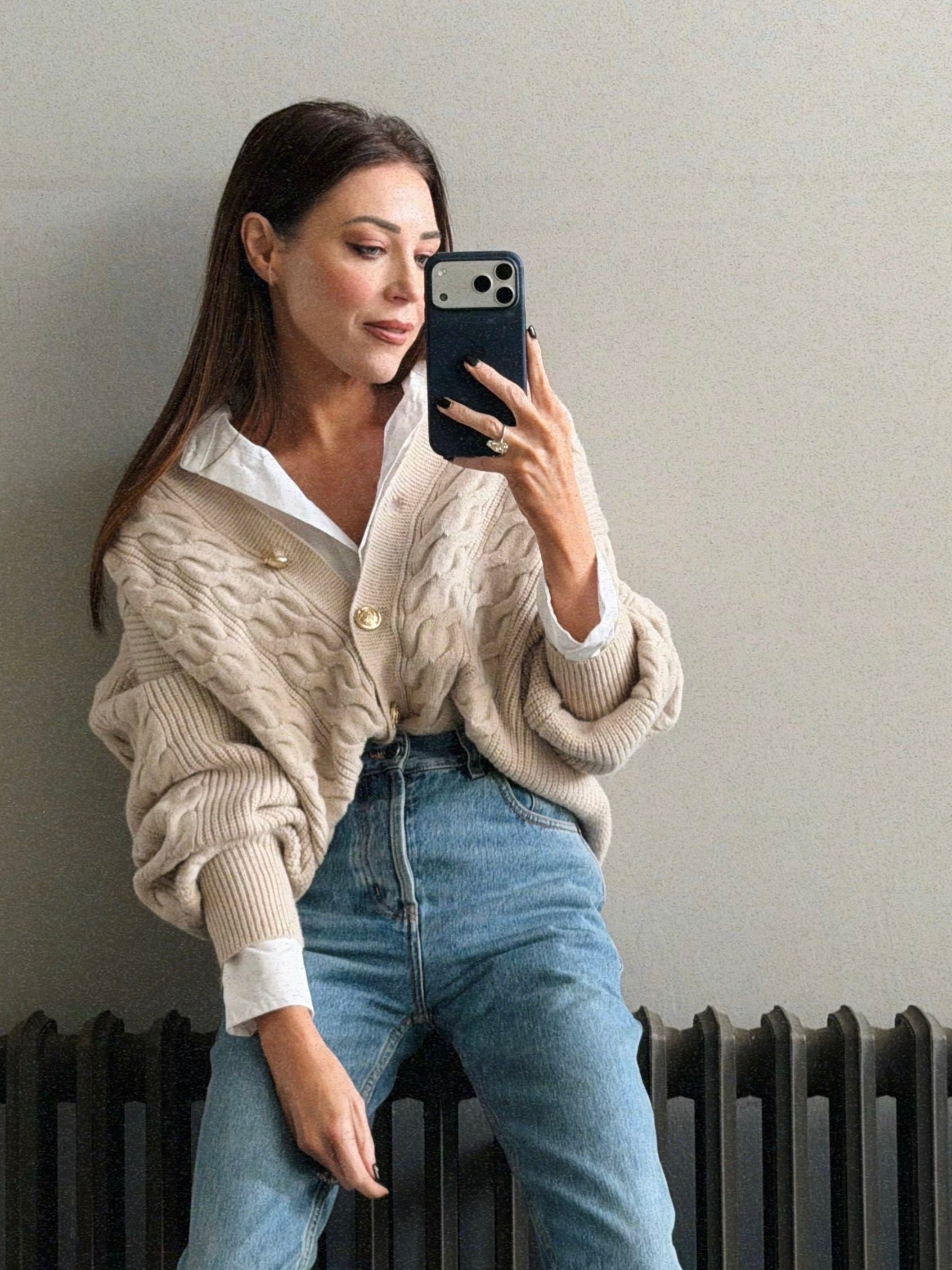 'AUSTIN' RIB KNITTED BUTTON THROUGH TOP NAVY