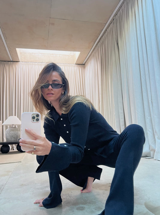 'AUSTIN' RIB KNITTED BUTTON THROUGH TOP NAVY