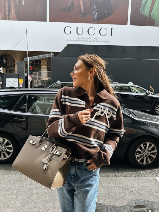 'SUKI' LAS KNITTED RUGBY TOP BROWN MULTI