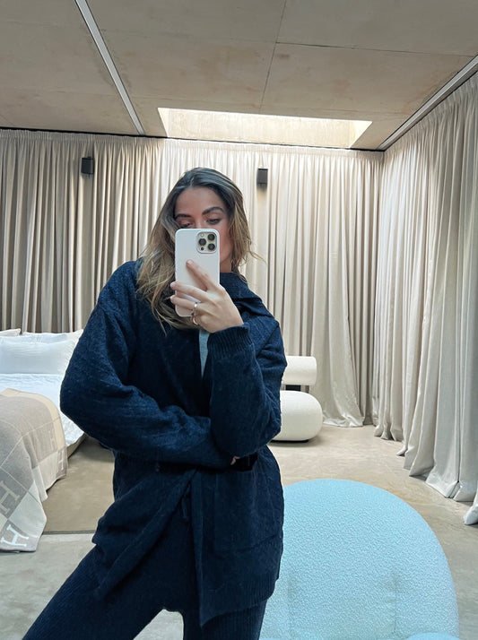 'CAMILLE' KNITTED CARDIGAN WITH SCARF DETAIL NAVY