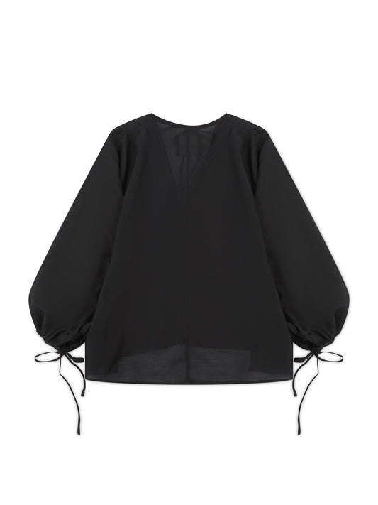 'GIGI' EXAGGERATED BALLOON SLEEVE CHIFFON BLOUSE BLACK