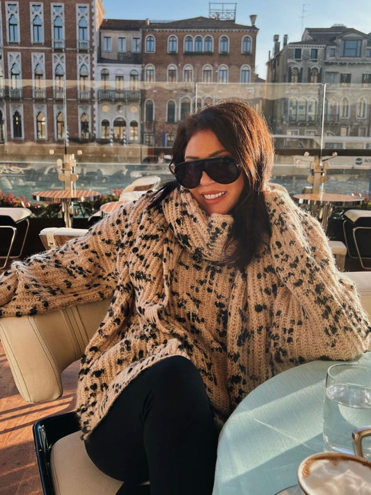 'BISOUS' SALT AND PEPPER BALLOON SLEEVE WOOL BLEND JUMPER WHITE