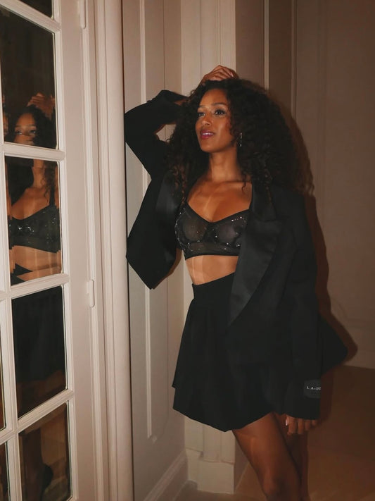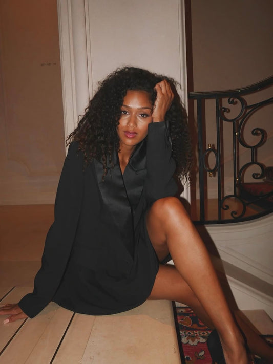 'HARLOW' CROPPED TUXEDO BLAZER BLACK