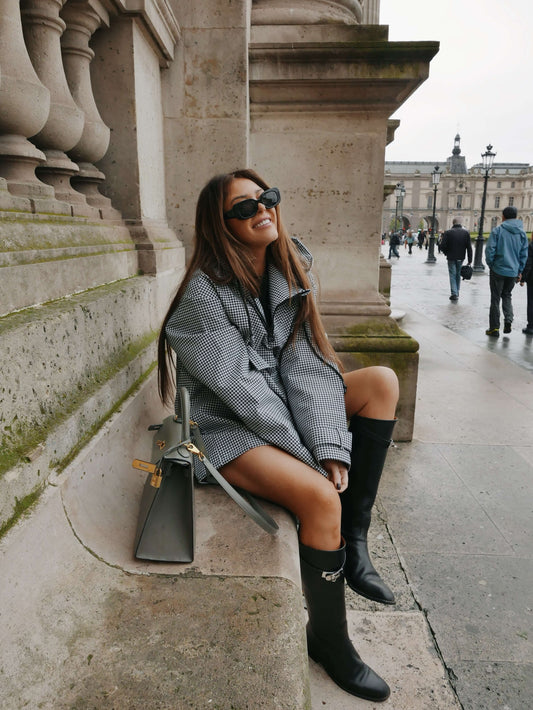 'MORGAN' HERRINGBONE DOUBLE BREASTED BELTED COAT BLACK