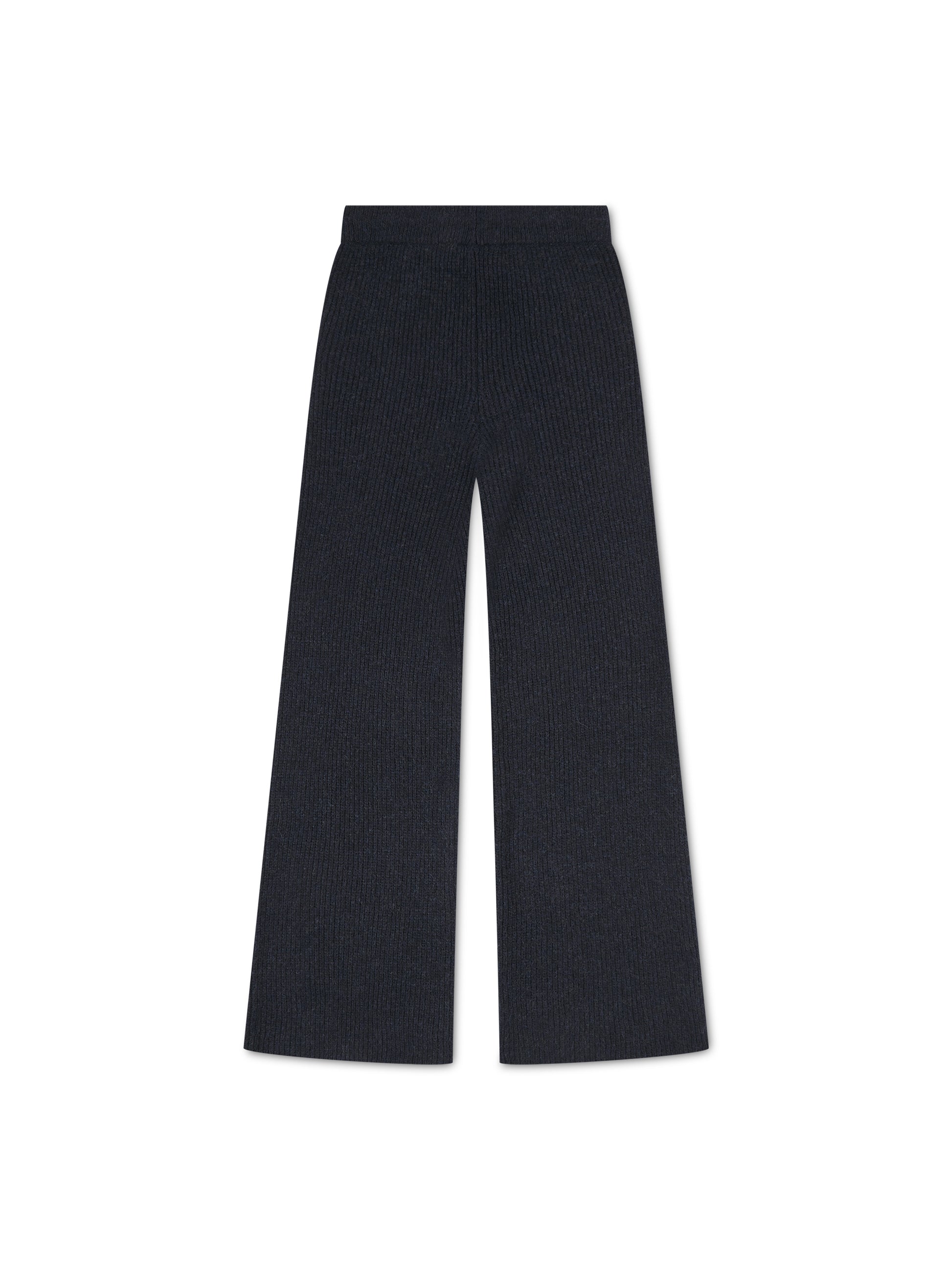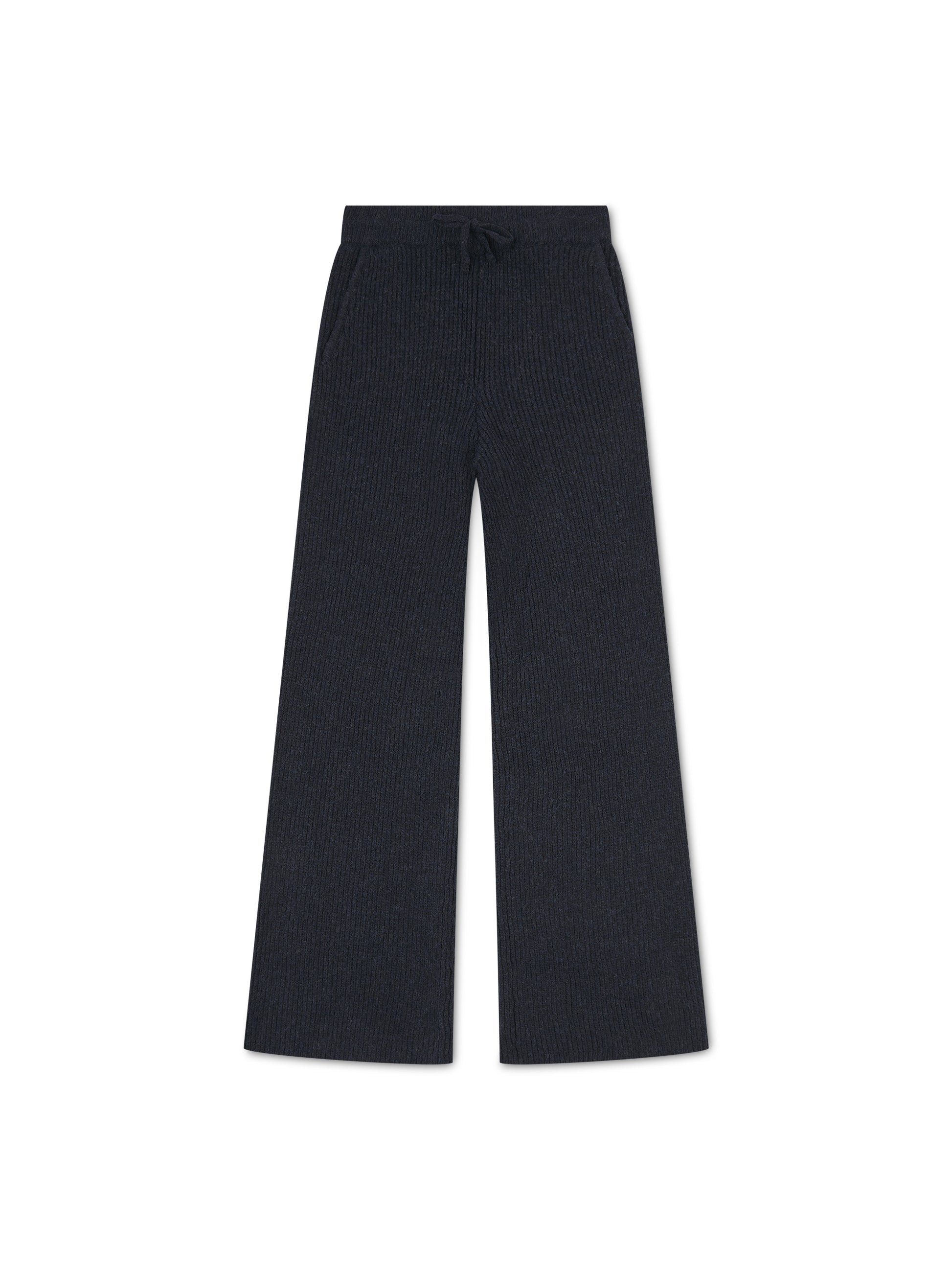 'CAMILLE' RIBBED DETAIL KNITTED WIDE LEG TROUSERS NAVY