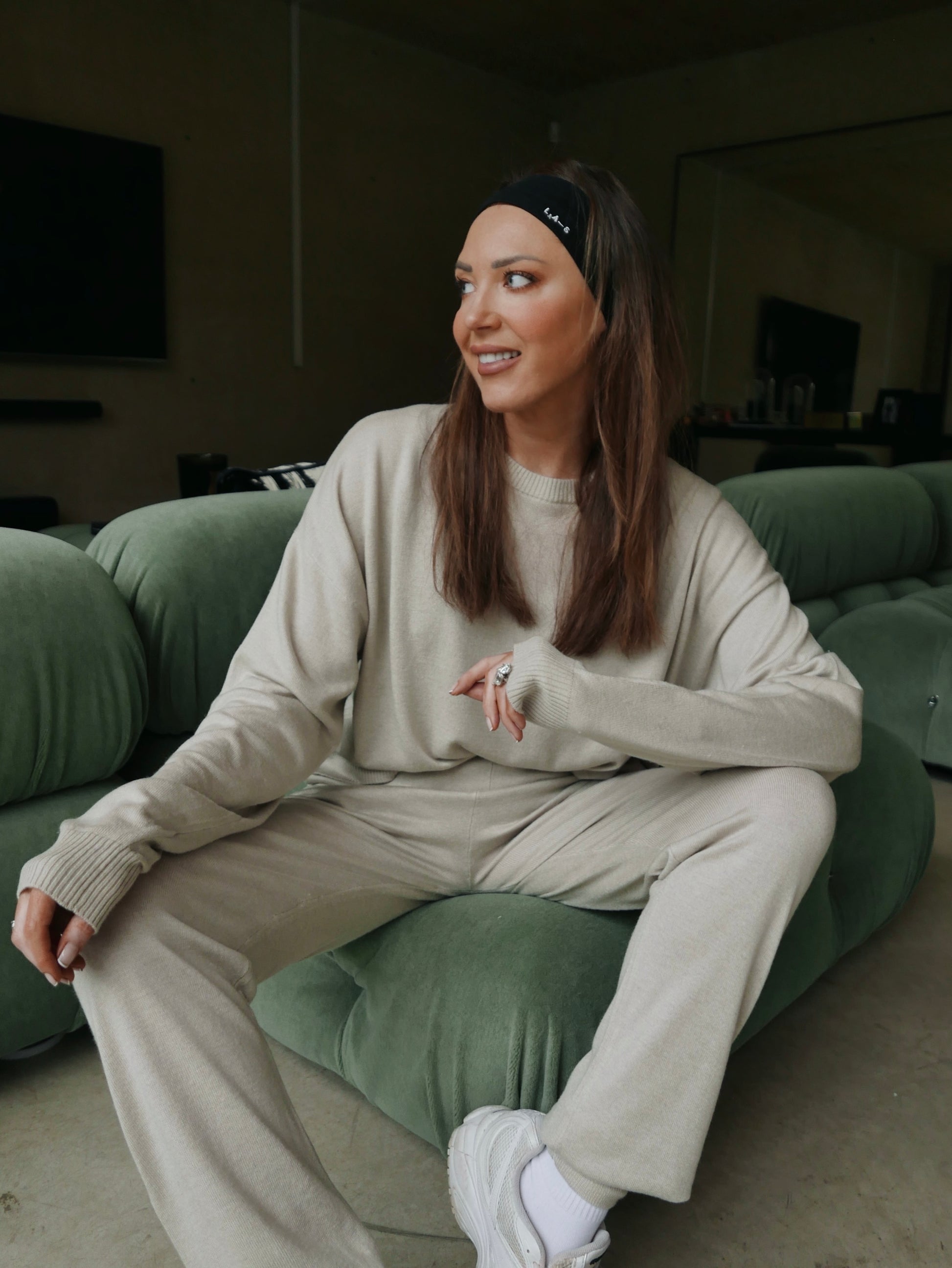 'LOULOU' CASHMERE BLEND SPLIT HEM KNITTED JUMPER OAT BEIGE