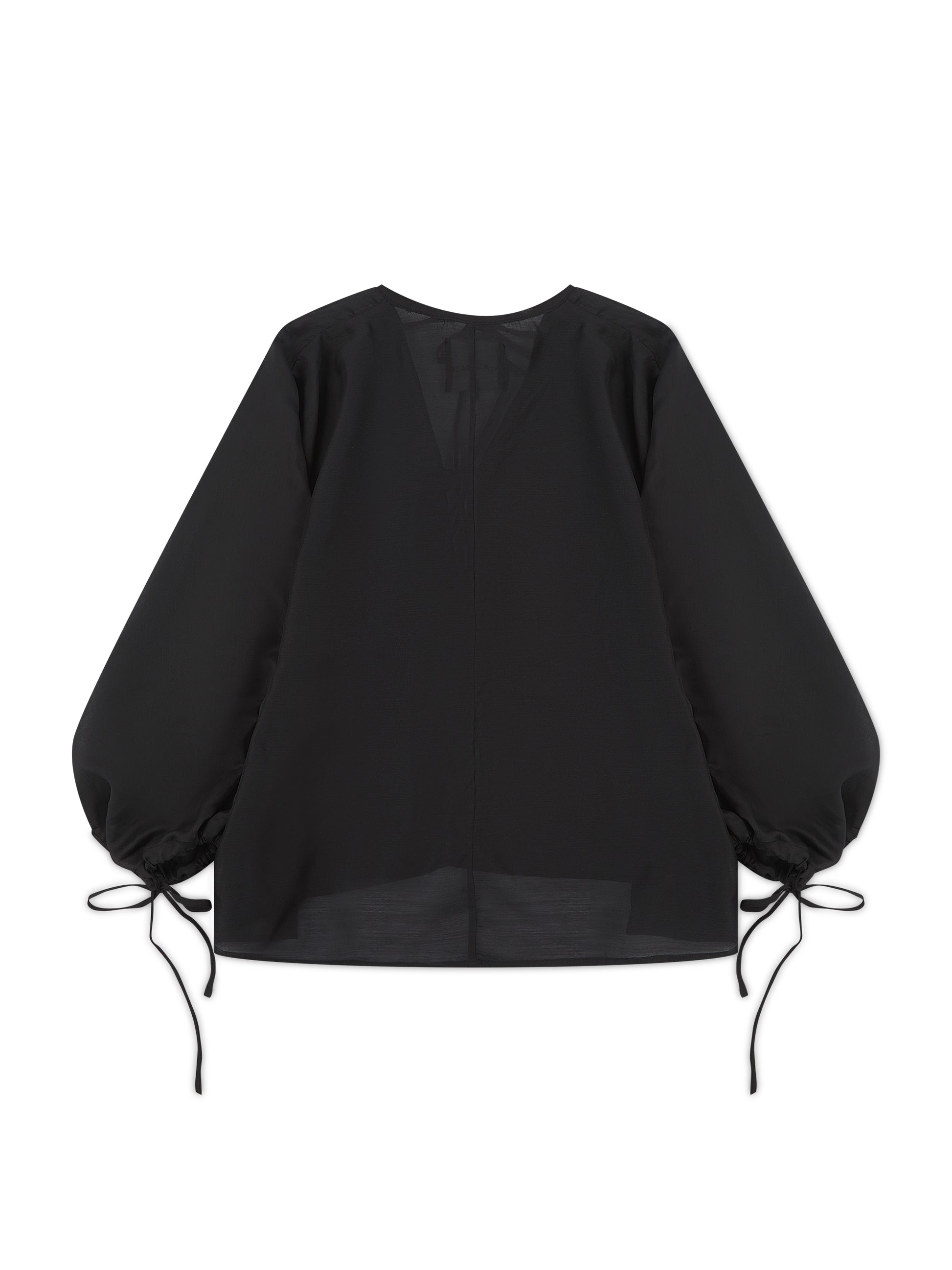 'GIGI' EXAGGERATED BALLOON SLEEVE CHIFFON BLOUSE BLACK