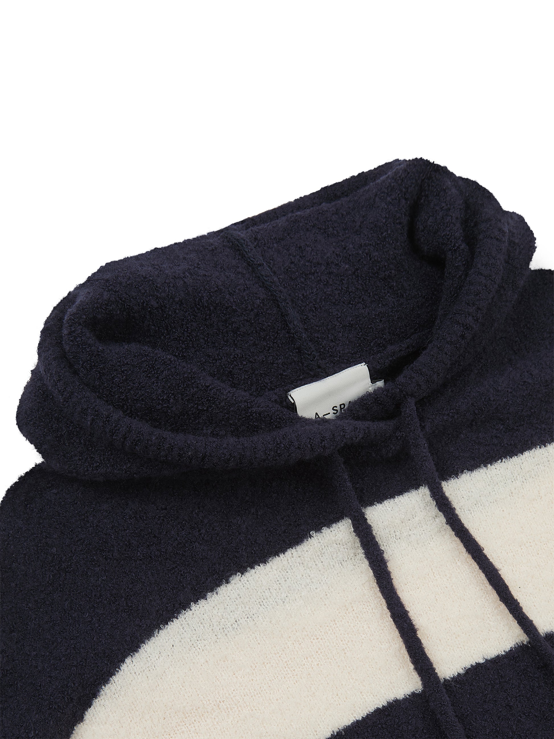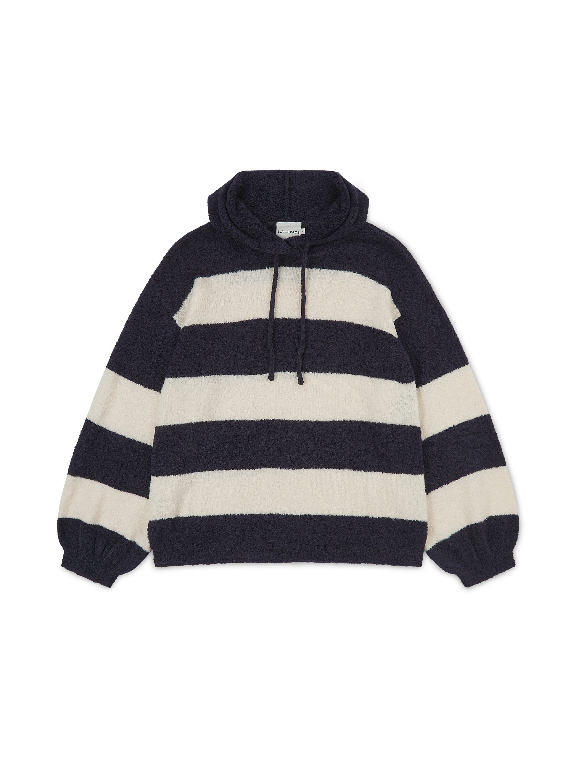 'HAMPTONS' KNITTED STRIPE BALLOON SLEEVE HOODIE NAVY