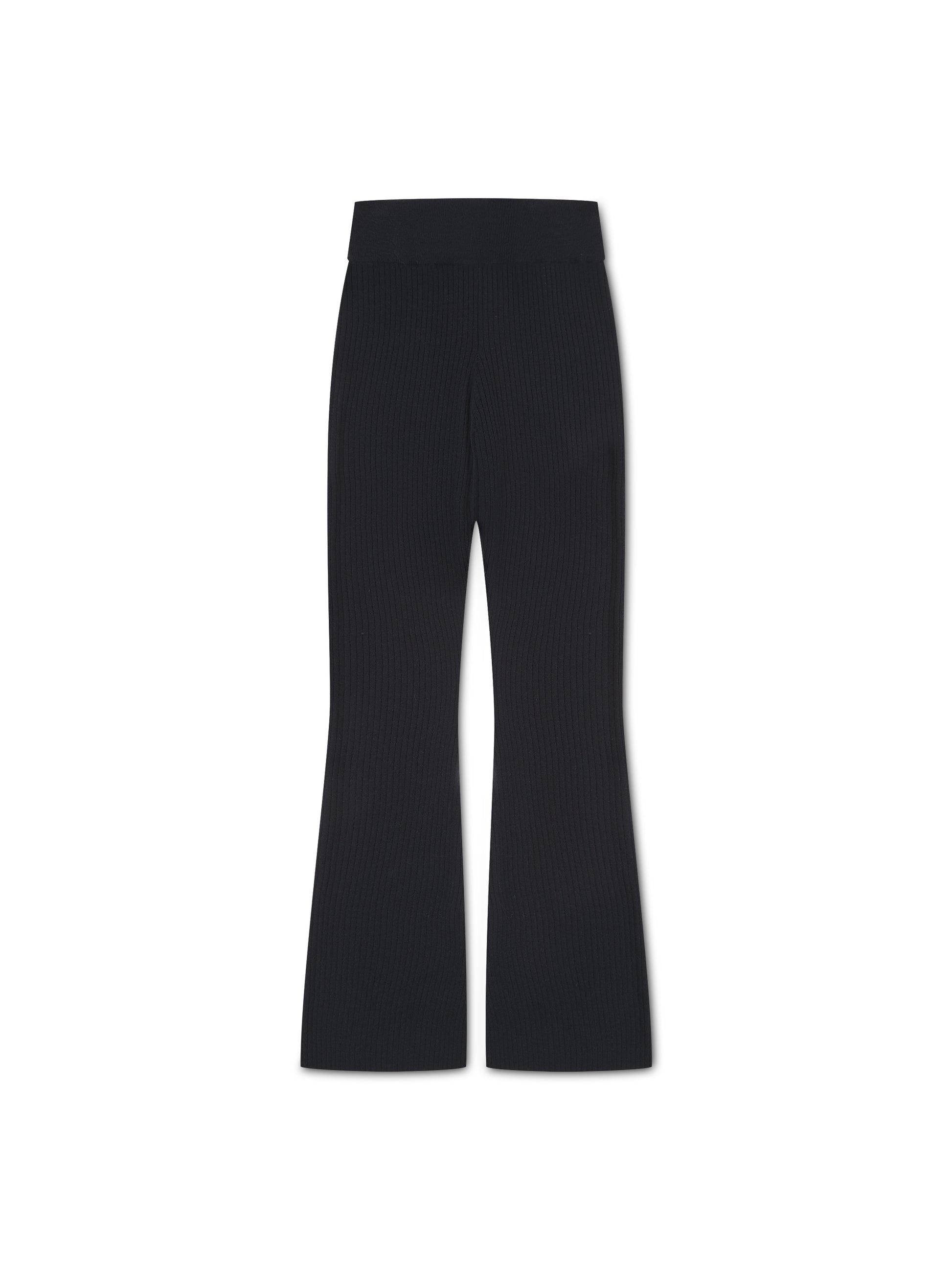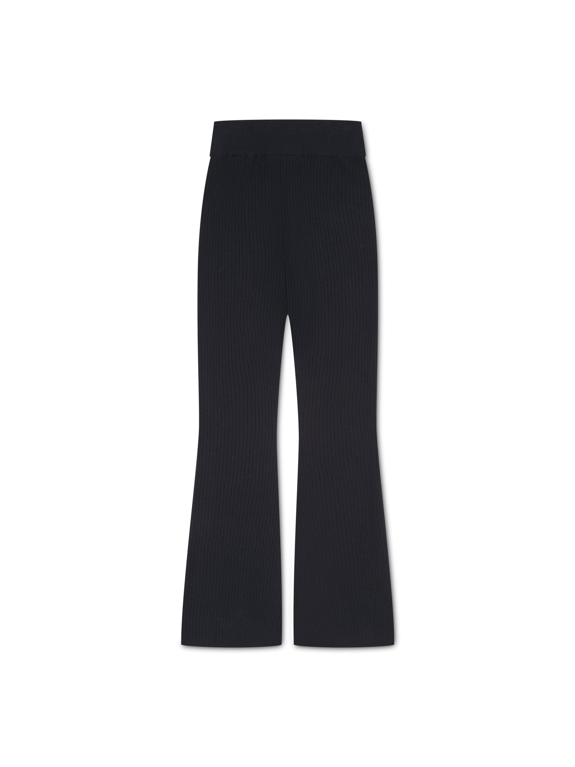 These cashmere blend pull-on style trousers are designed for a slim fit, high-rise silhouette with an elasticated waistband, subtle flared legs and split hems. Style with our ‘Austin Rib knitted Button Through Top’ for an elevated loungewear look.