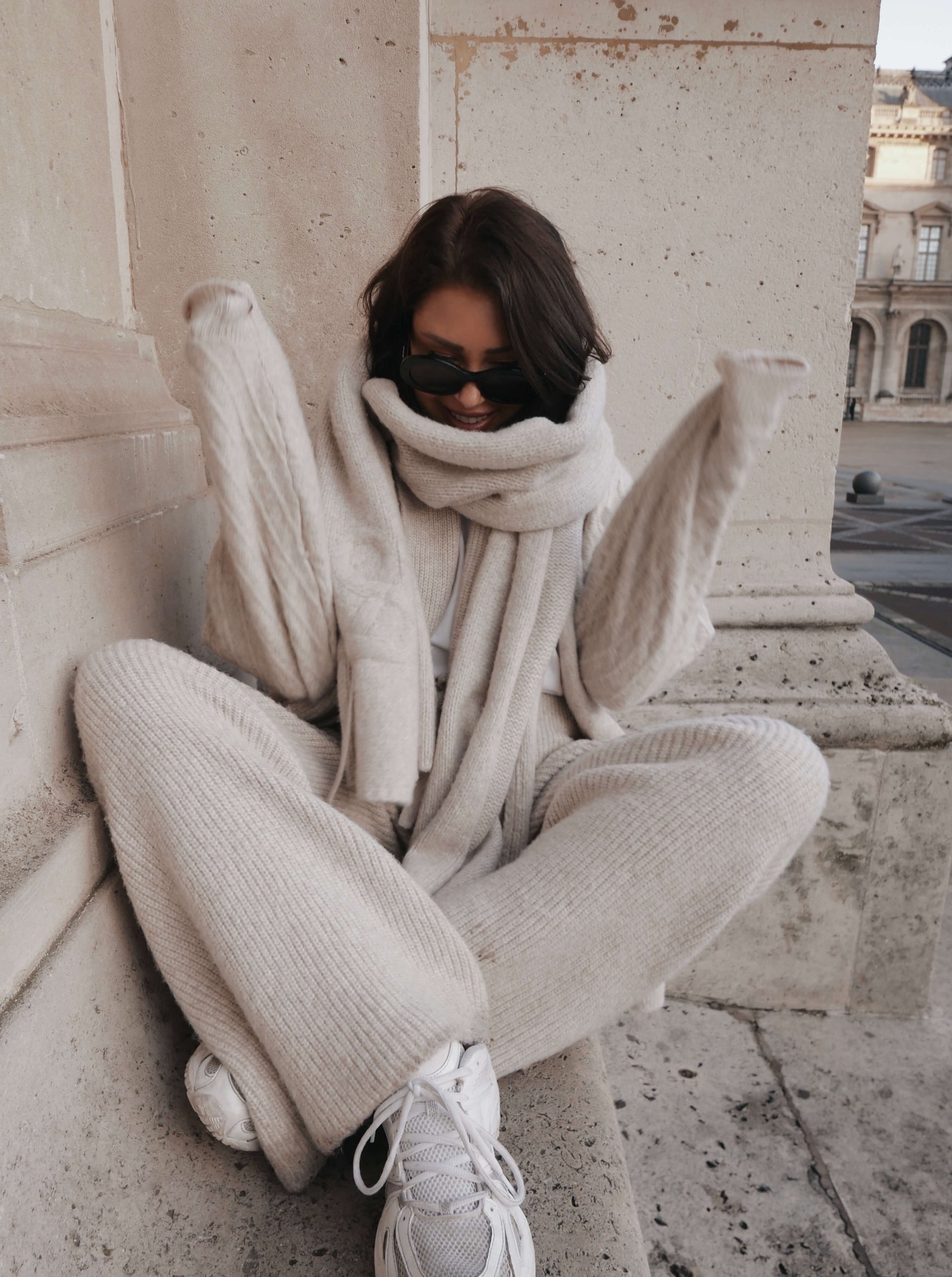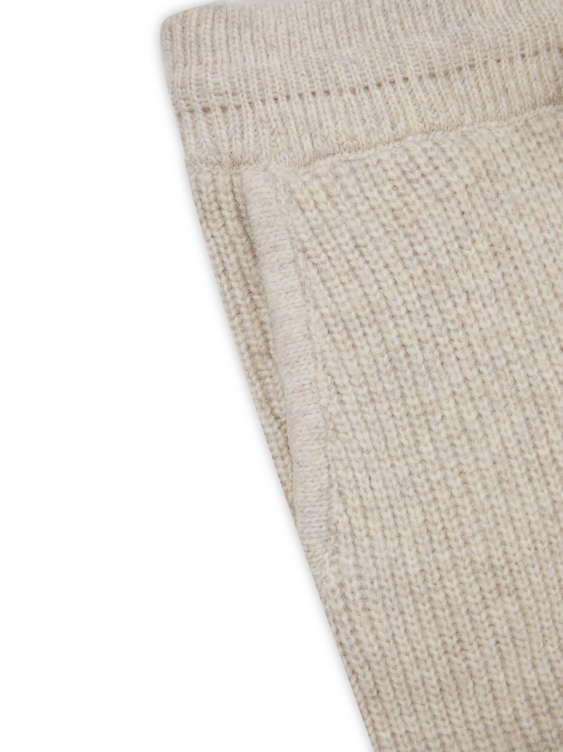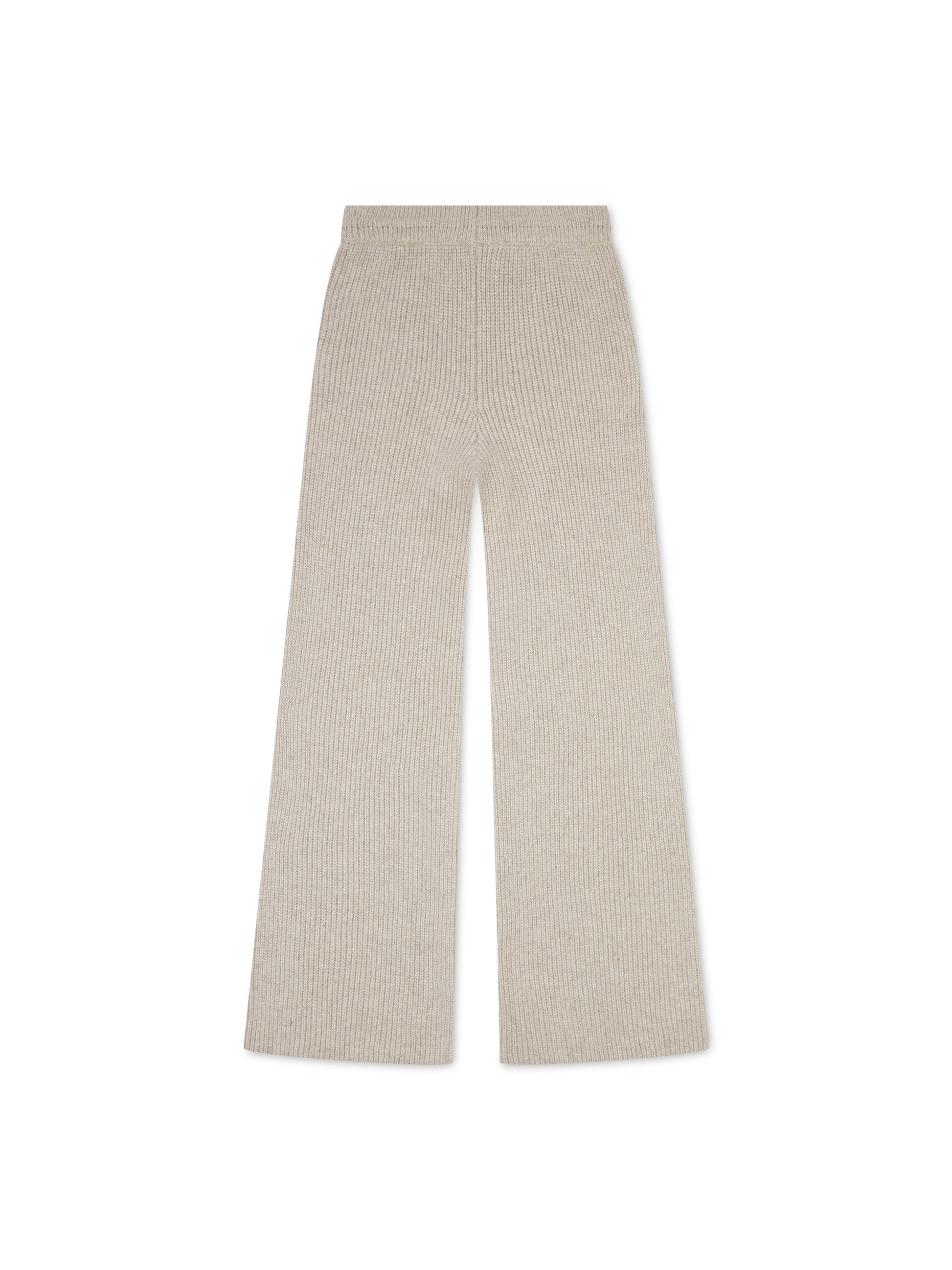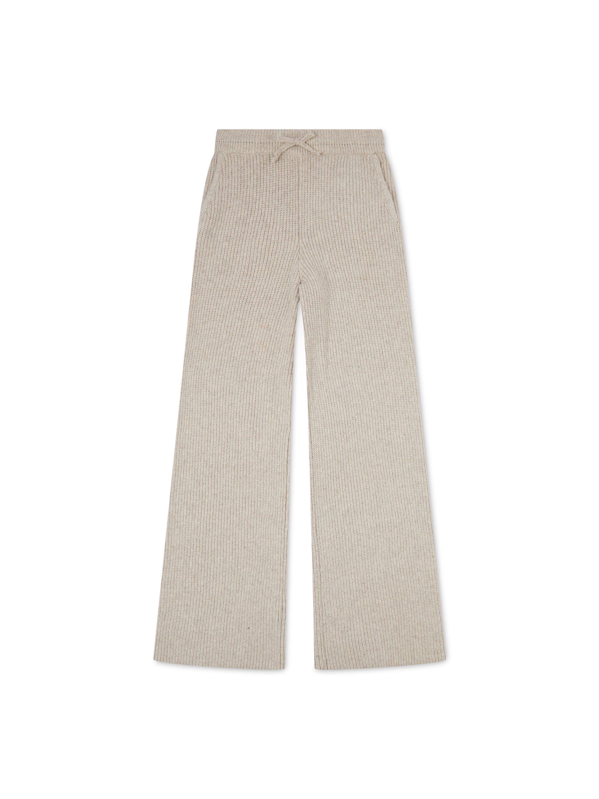 'CAMILLE' RIBBED DETAIL KNITTED WIDE LEG TROUSERS BEIGE