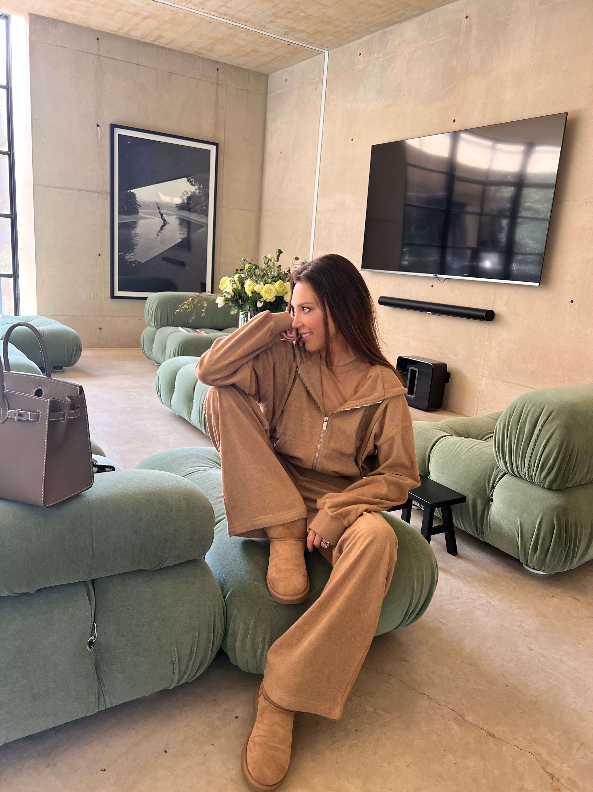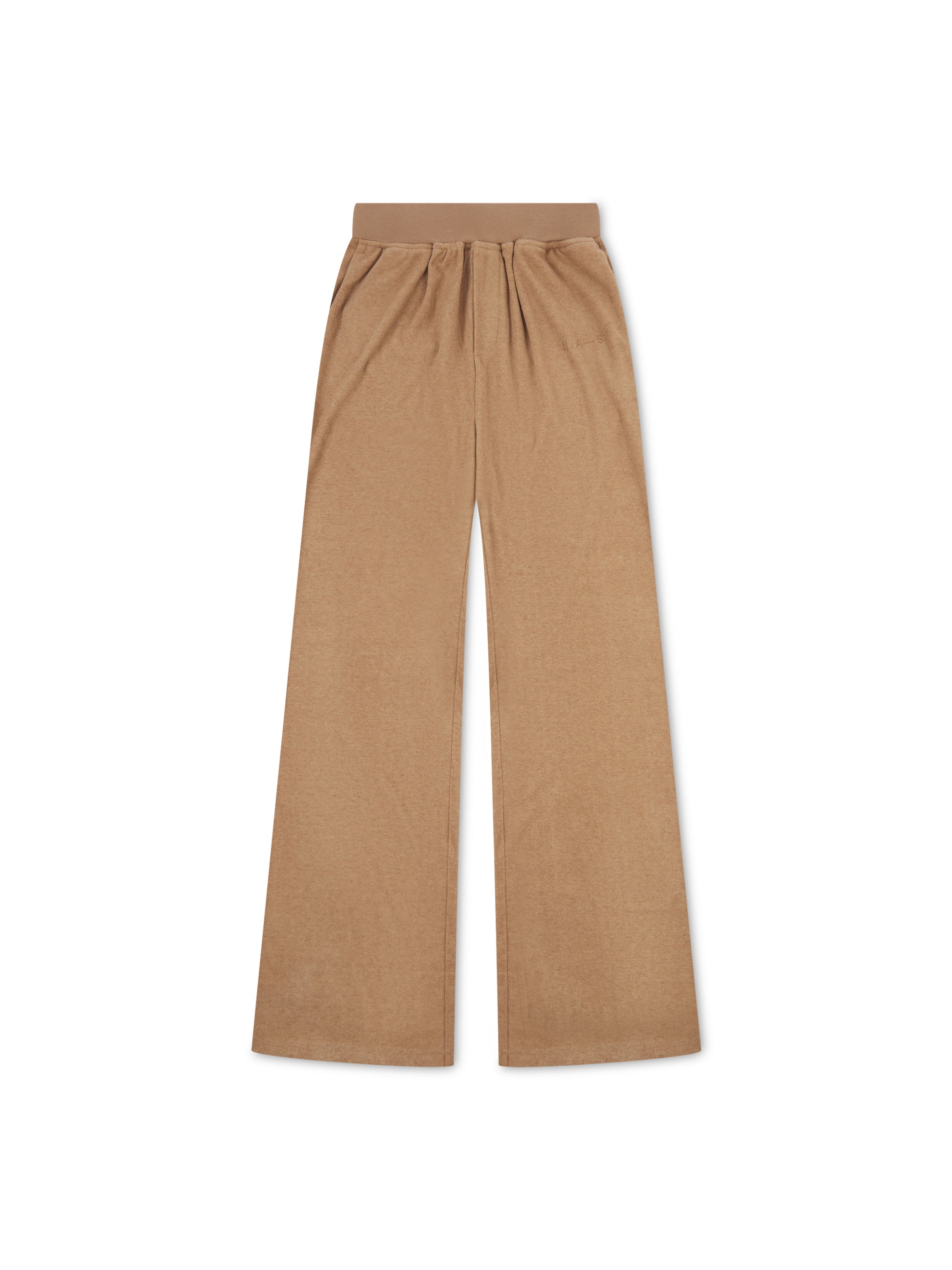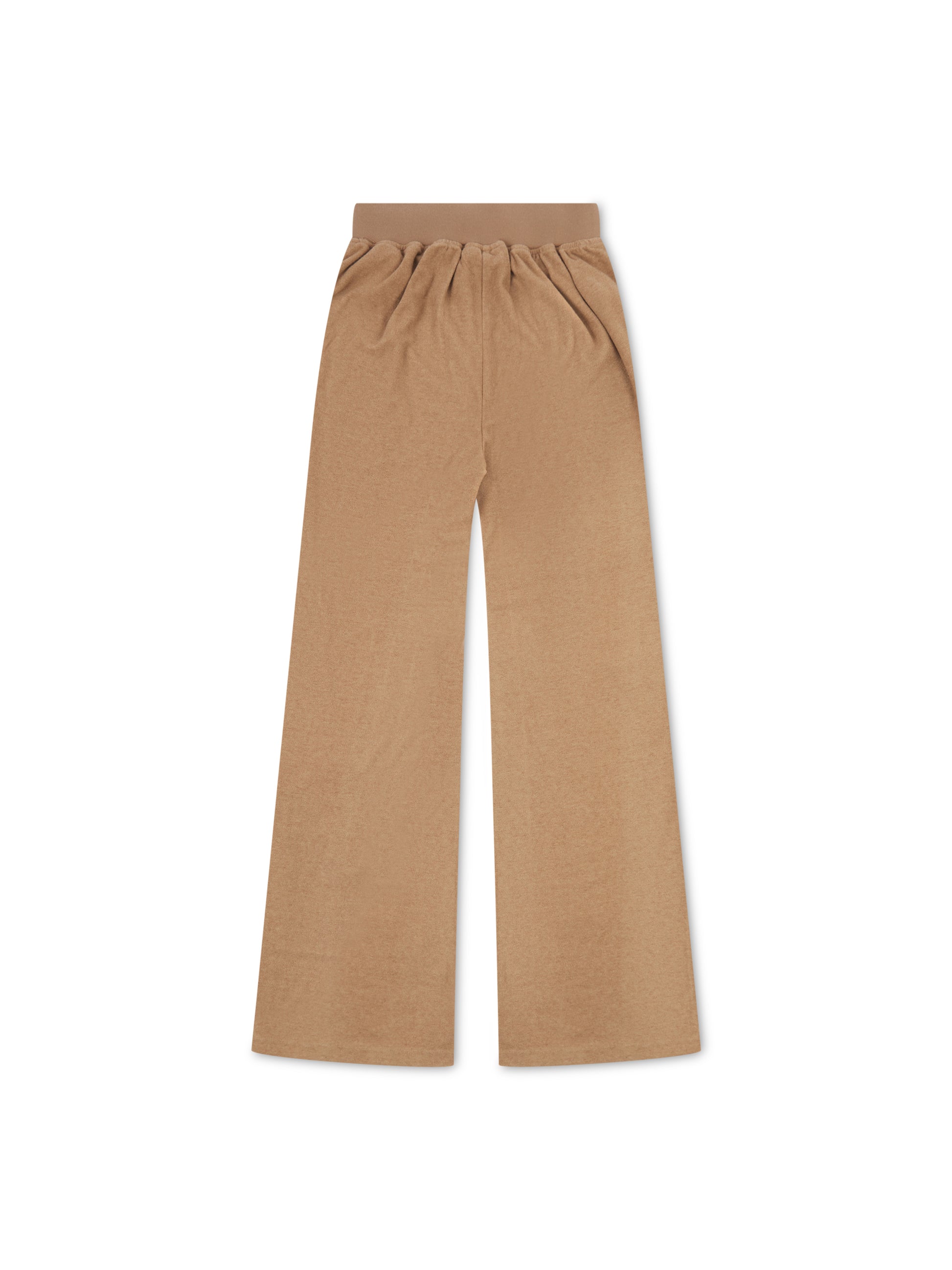 'PARIS' VELOUR TOWELLING EMBROIDERED WIDE LEG TROUSERS CAMEL