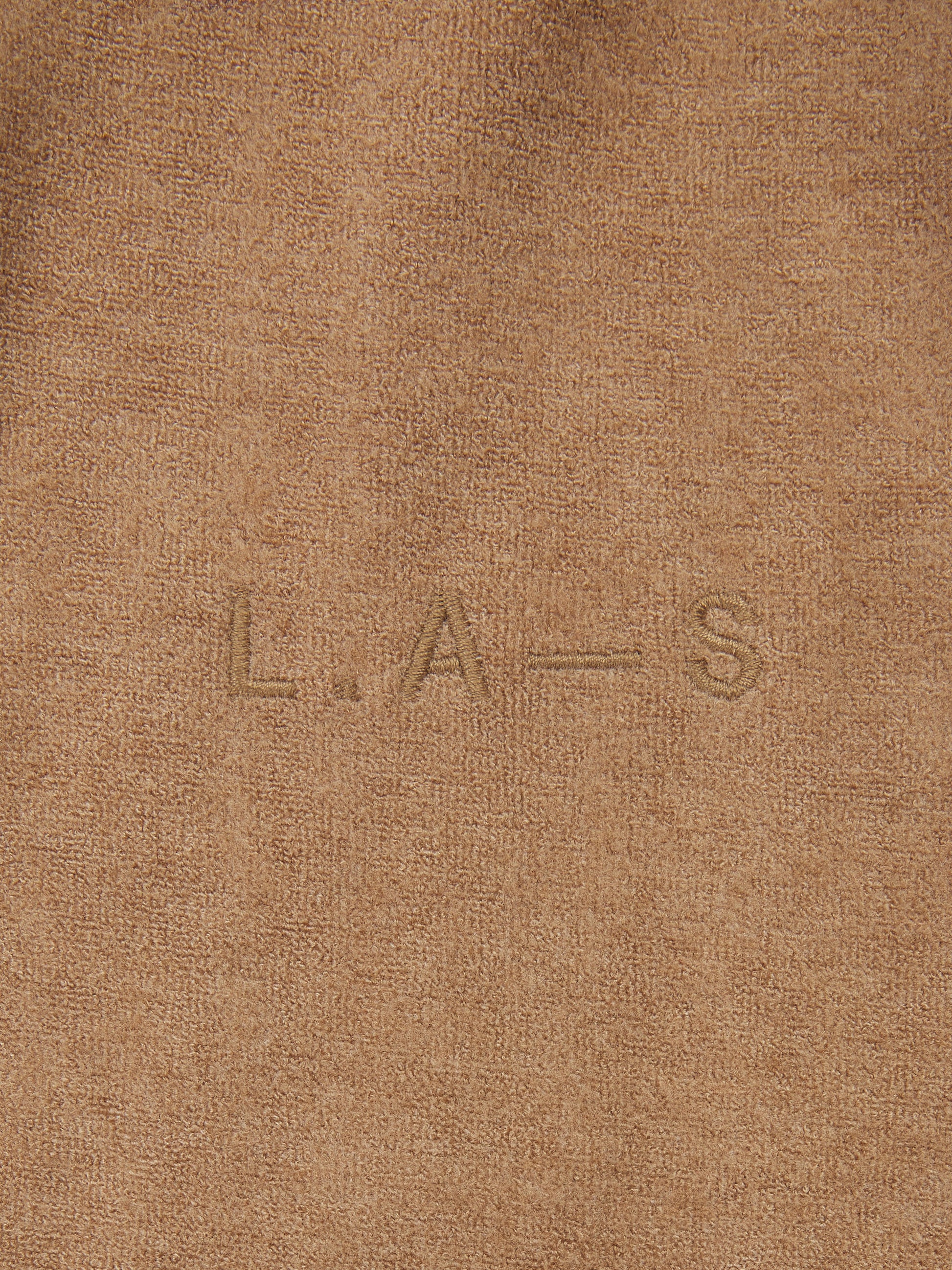 Our velour trousers capture the essence of the '90s. Made from soft velour, they feature subtle L.A-S branding, a relaxed wide-leg fit, with a high waist, and an adjustable waistband with internal drawcords for ultimate comfort. Ideal for lounging or injecting a retro-chic flair into your look.