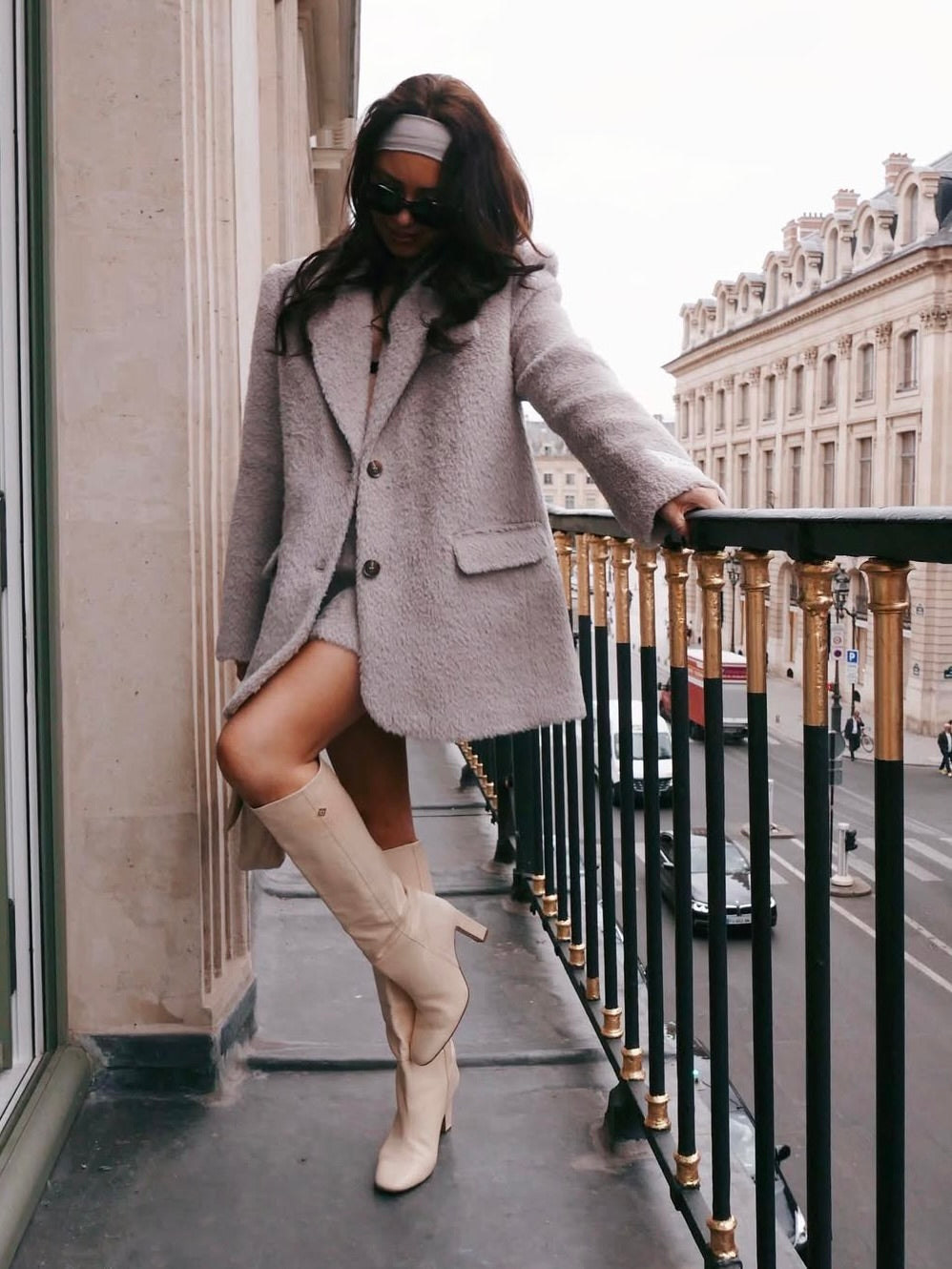 'LORIE' TEXTURED WOOL BLEND MINI SKIRT IN MINK
